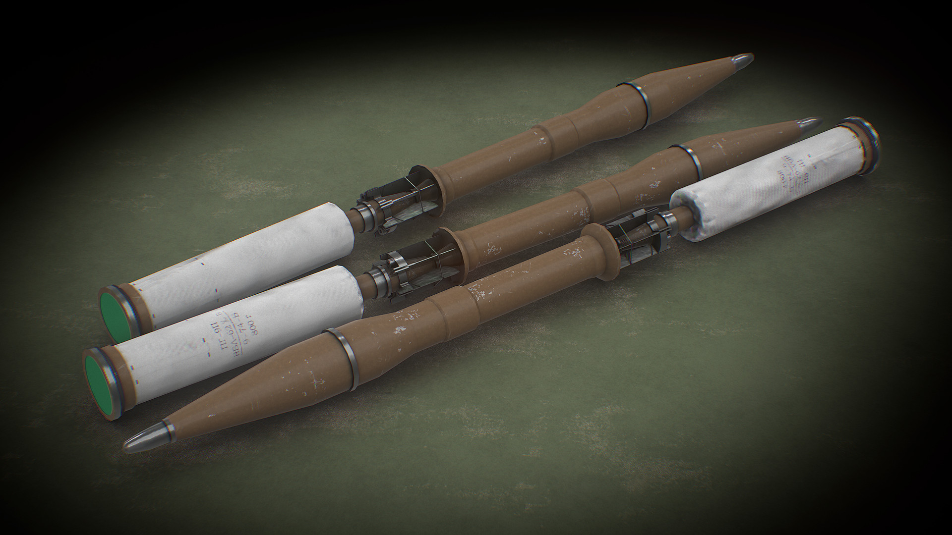 Fusée de propulsion VP-9 – piézoélectrique, nez-base, avec armement à distance (2.5 à 20 mètres) et autodestruction (3.8 à 6 secondes une fois le coup parti).
