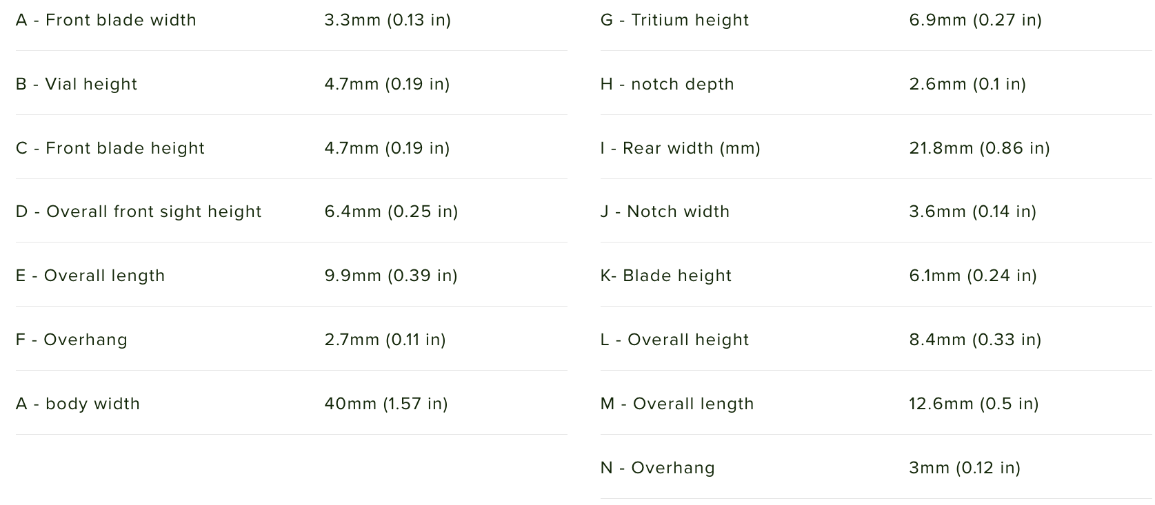 Mires Meprolight Tru-Dot, utilisables seules ou avec le Meprolight Micro, illumination permanente au Tritium (VERT) – fixation simple et rapide, en remplacement des mires d’origines – permet le montage du Meprolight Micro (verrouillage QD rapide). 20% de luminosité en plus que tous les autres systèmes pour une acquisition de cible dans toutes les conditions d’éclairage, installation en quelques minutes & illumination jour/nuit garantie 12 ans, sans maintenance ni batterie.