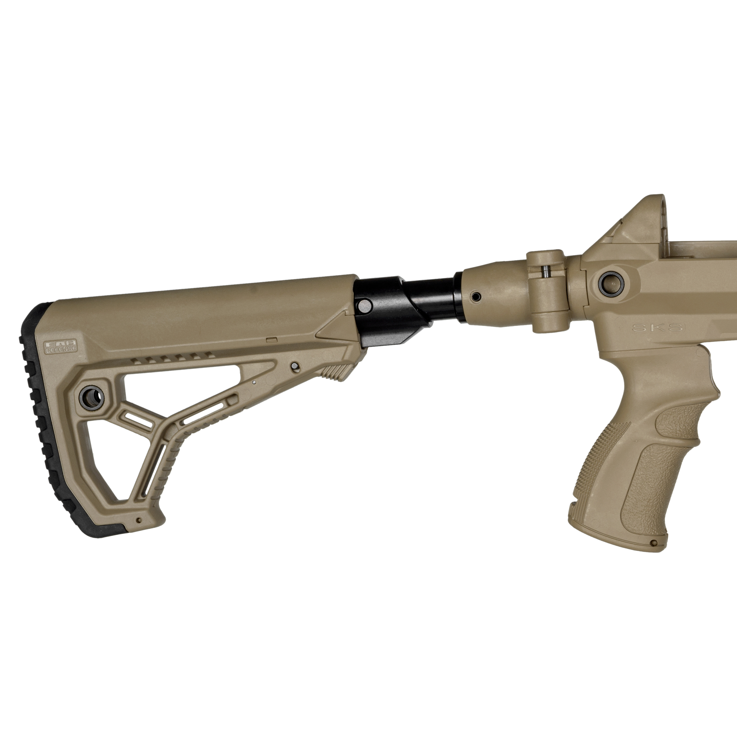 Montage simple & rapide, conçu pour tous les usages – au combat ou pour le loisir – et pour tous les modèles courants de carabines SKS, poignée large pour une prise en main sécurisé même avec des mains humides ou le port de gants. La crosse pliable se déploie d’une simple pression sur le bouton de l’axe de verrouillage – même pliée l’accès à la queue de détente est immédiat, pour pouvoir utiliser l’arme en urgence – tout en disposant d’une arme compacte, facile à transporter. L’absorption du recul par le piston de la crosse assure un cycle de tir harmonieux et confortable, même en cas de tir en mode automatique.