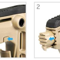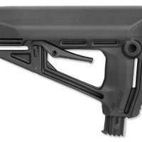 Crosse IMI Defense STS “Sopmod” pour AR15 et M16, à destination de tous tubes Mil-Spec et Commercial. Compartiment arrière étanche intégré pour batterie AA ou CR123, accessible par bouton-poussoir. Conçue en polymère et renforcée en fibre de verre, intègre le système LTS (Leaves Tension System) – maintient une tension permanente sur le tube pour une stabilité optimale. Passage de sangle à l’avant de la crosse, un point de fixation ambidextre QD pour une sangle de combat.