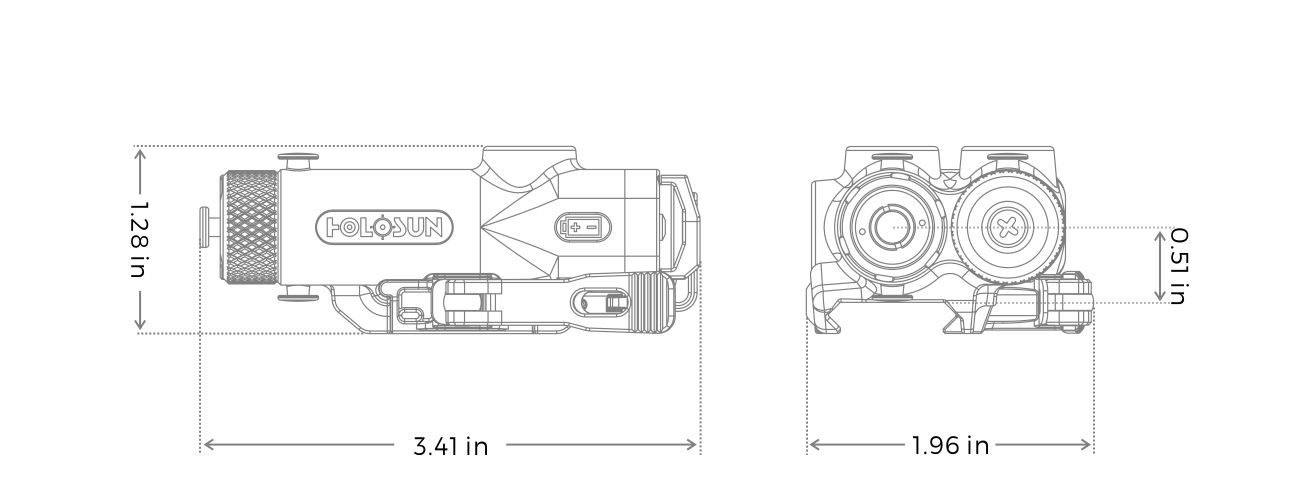 Désignateur Laser Holosun LE117IR – laser INFRA-ROUGE, monté dans un boitier Titanium étanche et résistant aux chocs – validé IPX8 avec montage rapide QD. Dérive et élévation réglable sur une plage de +/- 60 MOA, excellente autonomie (deux batteries CR123A), gestion des modes via un sélecteur unique et bouton de mise sous tension/intensité sur le haut du boitier (pour la gestion du faisceau laser). Fourni avec son interrupteur distant – corps aluminium, gestion des différents modes et de la mise en tension – fixation sur support Picatinny.