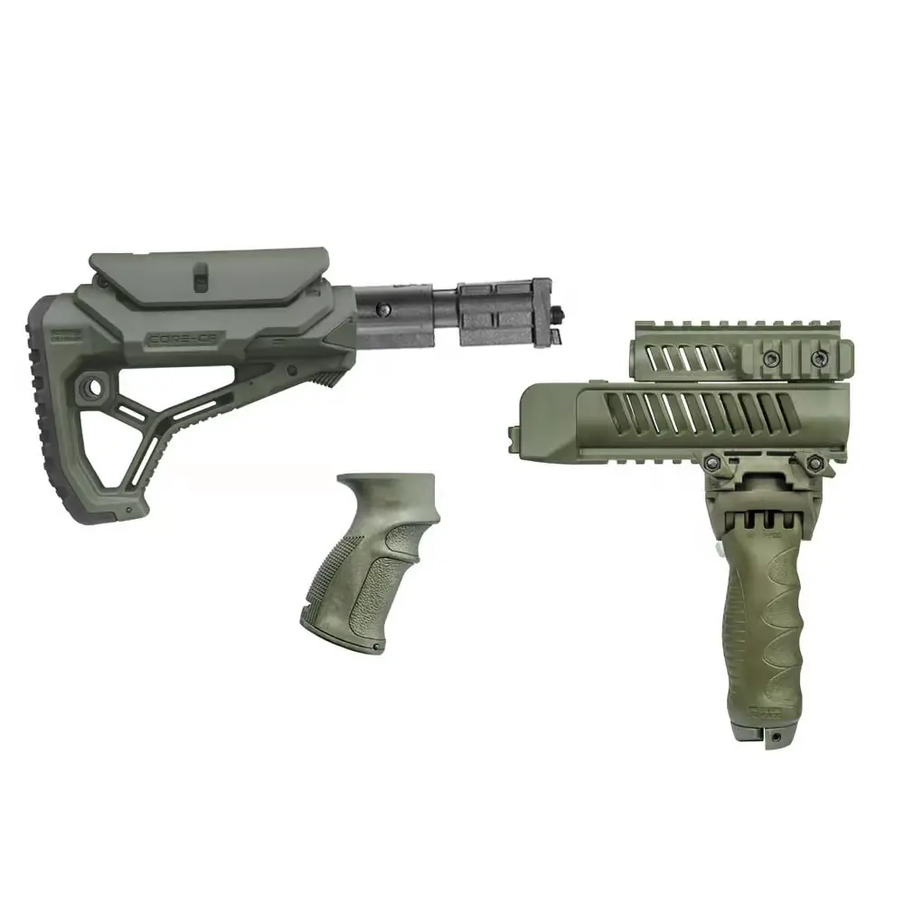 FAB Defense Kit accessoires VZ 58 (basique) – un kit complet pour carabines VZ 58, disponible en 03 coloris. Ensemble de quatre éléments : une crosse tactique M4-VZ P SB – dédié à la VZ 58 – une poignée AG 58, un garde main SA 58, prise en main et appui optimisé pour tous les angles de tir, parfait pour le CBQ – installation simple et rapide & enfin une poignée bipied (T-POD G2).