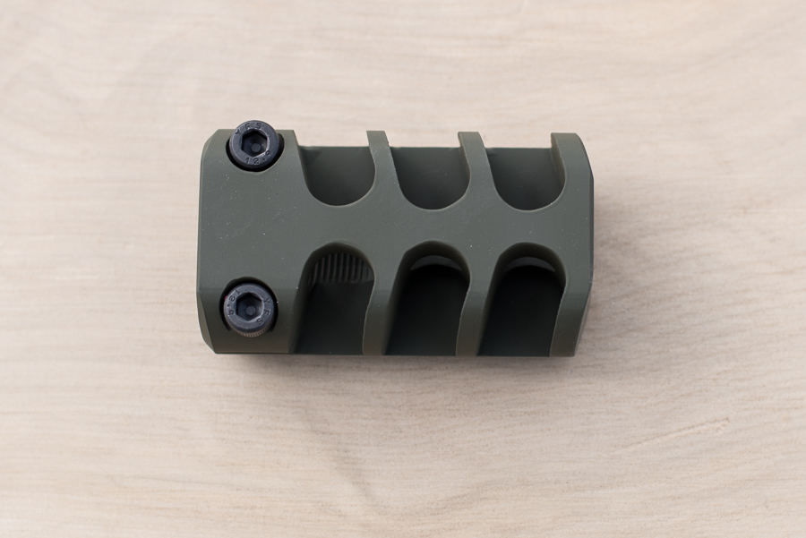 Deux vis incluses (finition NOIR) avec le frein de bouche Defcon 1 – pour assurer une meilleure stabilité une fois fixé sur le canon. Les vis peuvent être commandées dans les mêmes teintes que celles proposées pour le frein de bouche.