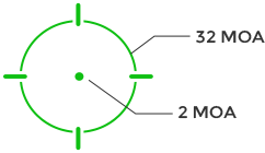 • Réticule VERT – Point 2 MOA / Cercle 32 MOA