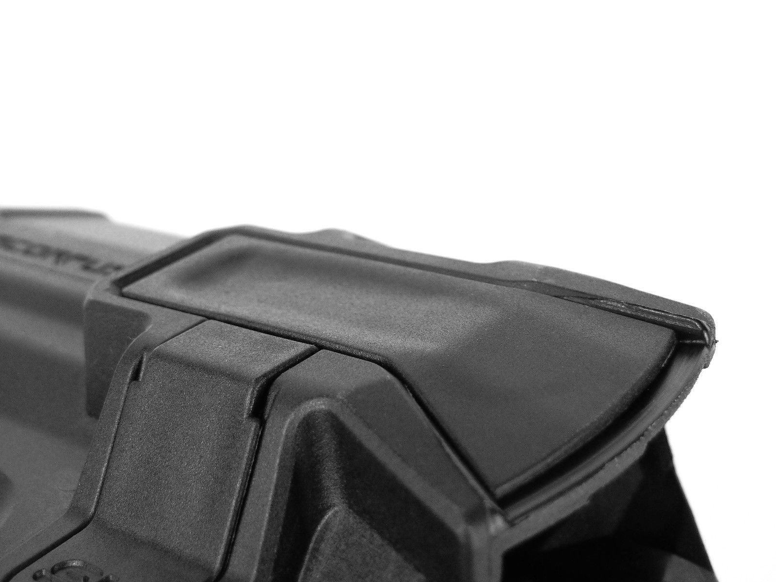 Permet une inclinaison positive ou négative de 10° ou de 360° (version MX) du holster – pour un transport confortable dans toutes les configurations – fabrication composite en polymère renforcé de fibre de verre, validé MIL-SPEC.