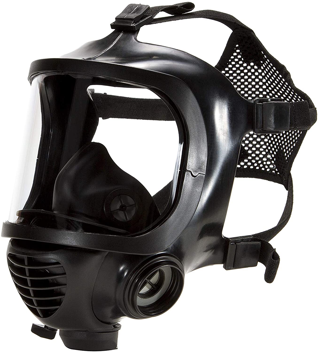 Masque normalisé CE EN 136: 1998, classe III & EN 148-1 (filetage), fabrication en caoutchouc de bromobutyle (polyisobutylène vulcanisé) – imperméabilité maximale aux TIC (Toxic Industrial Chemicals) et aux CWA (Chemical Warfare Agents), excellente résistance thermique et mécanique. Demi-masque interne en silicone hypoallergénique, parfaitement étanche – pas de buée, même en cas d’effort soutenu – réduction significative de la présence de CO2 dans le masque & résistance mécanique faible à l’inspiration/expiration (contraintes physiologiques du porteur fortement réduite).