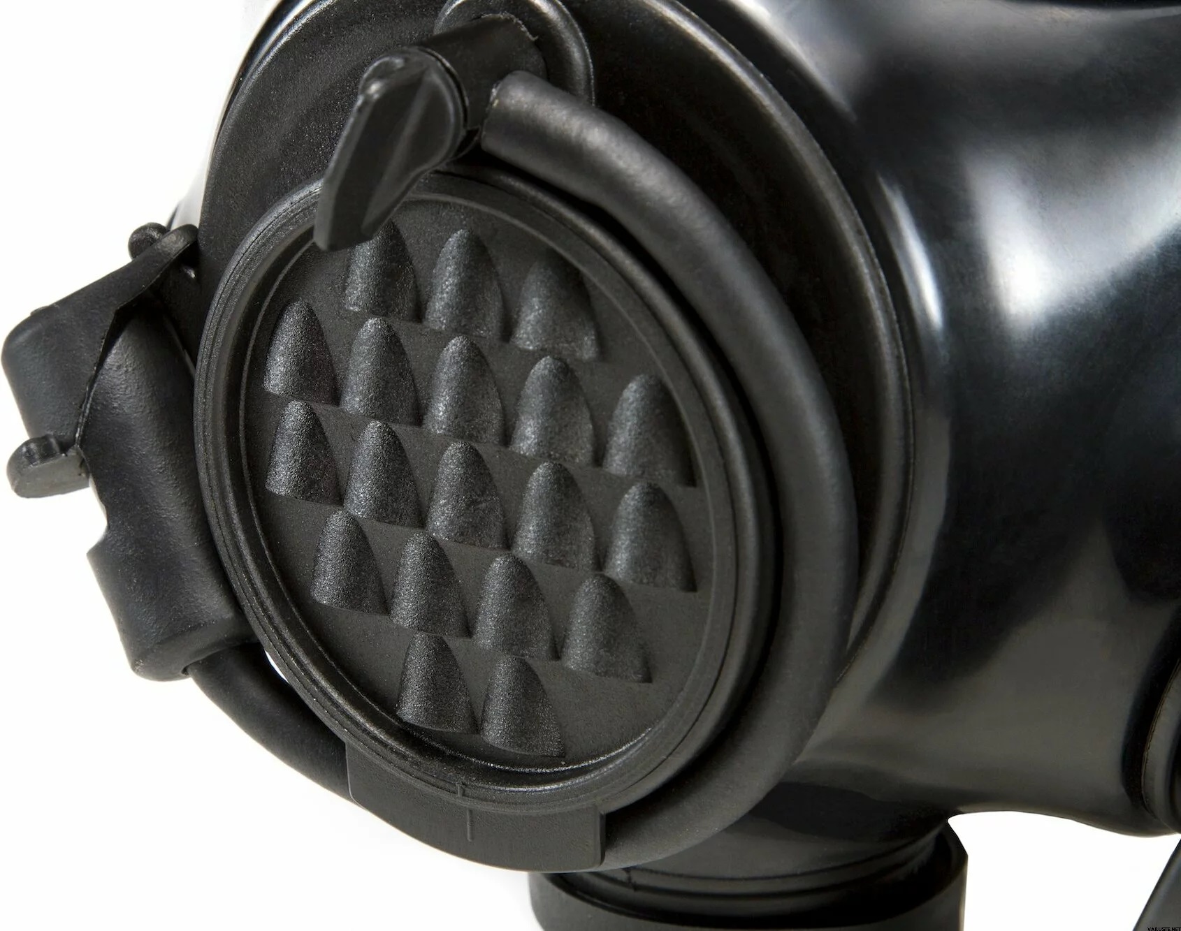 Masque normalisé CE EN 136: 1998, classe III & EN 148-1 (filetage), fabrication en caoutchouc de bromobutyle (polyisobutylène vulcanisé) – imperméabilité maximale aux TIC (Toxic Industrial Chemicals) et aux CWA (Chemical Warfare Agents), excellente résistance thermique et mécanique. Demi-masque interne en silicone hypoallergénique, parfaitement étanche – pas de buée, même en cas d’effort soutenu – réduction significative de la présence de CO2 dans le masque & résistance mécanique faible à l’inspiration/expiration (contraintes physiologiques du porteur fortement réduite).